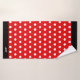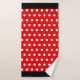 White polka dots on red and black Bath Towel Set. Name text can be personalised.