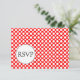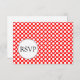 An editable RSVP card with white polka dots on red and simple serif fonts on reverse. Click Customise It to change background colours, fonts and more, even save your design for later.