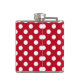 White polka dots on red hip flask