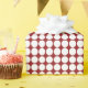 Rows of bold white polka dots on a red background form a stylish geometric pattern.