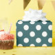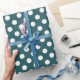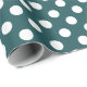 White polka dots on teal wrapping paper