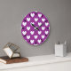 White polka hearts on purple large clock