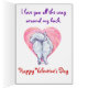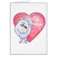 Animal Parade Romantic White Pomeranian Dog Be Mine Personalised Heart and Love cardsbrought to you by Imagine That! Design features our original artwork of a cute white Pomeranian dog holding a pretty rose in its mouth with layered purple, red, and pink hearts behind and the words, Be mine. On the inside of this romantic card is the fluffy pup from behind with the words, I love you all the way around my back. Perfect gift for Valentine's day, his or her birthday, for proposing marriage in a fun and original way, or just to say, I love you. Be mine! Woof!
