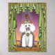 White poodle Far East princess (or prince) in a golden crown and costume is a great gift for Mother's Day or any occasion. She is on stage wearing her crown and cape.