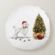 White Poodle Funny Christmas Dog with Tree Round Cushion