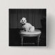 White poodle sitting on stool B&W 15 Cm Square Badge