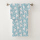 Cute White Poodles Pattern with Bows and Hearts on Delicate Swirl Pattern a Soft Blue Background Bath Towels.