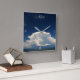 Photo of a white puffy cloud over a large river. The sky is very blue.