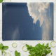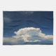 Photo of a white puffy cloud over a large river. The sky is very blue.