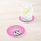 Happy Halloween illustration for girlies featuring a white pumpkin with a pink bow on a pink bokeh background.