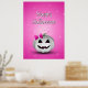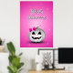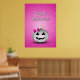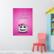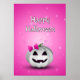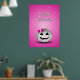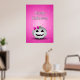 Happy Halloween illustration for girlies featuring a white pumpkin with a pink bow on a pink bokeh background.
