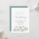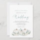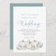 White Pumpkins Florals Teal Foliage QR Code Wedding. Modern minimalism style with Wedding in an elegant set script and easily personalise the rest of the text. Three white pumpkins with teal blue foliage and white florals are at the bottom for an autumnal feel.