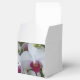 Purple and white orchids grace two sides of this fully customisable favour box. (Text is for example only). It comes in many colours and shapes. This photo is available on multiple products so you can coordinate your special day!