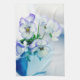 White Purple Pansies Flowers Blue Vase Floral Tea Towel