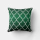 White Quatrefoil Pattern on Dark Forest Green Cushion