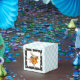 Square classic-style blue and white chequerboard favour box with a vintage image of Alice in Wonderland's white rabbit in full regalia in a black-and-white Wonderland frame. See the entire Wonderland Favour Box collection in the PARTY FAVORS section.