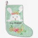 White Rabbit Green Gold Poinsettia Floral Small Christmas Stocking