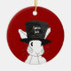 White hare in a big black top hat. Text on hat can be customised to say what ever you like. It now says Captain Jack. This will be a fun personal ornament for any member of your posse or family. On the back it says Down the Rabbit Hole Again! You can customise this also