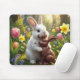 White Rabbit Licking a Chocolate Easter Bunny Mouse Mat
