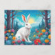 White Rabbit with Forest Flowers Nature Holiday Postcard