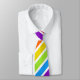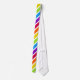 This necktie features white diagonal stripes alternating with bright, rainbow colours.