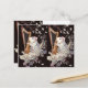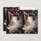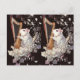 Artistic postcard showing a white rat interacting with a golden harp among scattered petals and abstract fragments. Ideal for sending a refined, whimsical note.