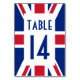 Simple white rectangle with Union Jack pattern in red, white and blue with table number to match.