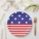 Classic patriotic paper plates for your 4th of July celebration . The top is blue with white stars , while the bottom has white and red stripes . Look for the matching napkins .