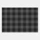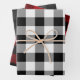 A buffalo plaid pattern holiday gift wrapping paper in white, red and charcoal grey.