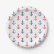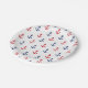 White Red Blue Nautical Anchor Pattern Paper Plate