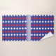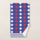 White Red Diamond Stripe Pattern Bath Towel Set. White Red Diamond Stripe Pattern on Blue Background.