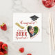 Create stylish white, red and gold graduation napkins for the class of 2025 graduate with a heart-shaped photo, Congrats saying, and grad's cap and diploma illustrations. It's easy to change the background colour inside the design tool to match your school colours. Please, personalise with the graduate's name and surname, upload a custom photo, and type a year before ordering.