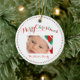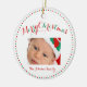 White, red and green custom photo Christmas ornaments with customisable photo and text - you can add your photo and your family name