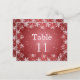 White red snowflakes wedding table number card