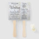 Give your guests an easy and fun way to follow along with the wedding ceremony with these program fans. Designed as a part of our White Reflections Wedding Suite, they feature black text over a background of reflecting white flowers and hearts. Fully customizable with places to enter ceremony details as well as the names of the wedding party.