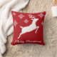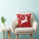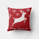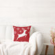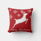 White Reindeer Silhouette On Red With Snowflakes Cushion