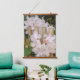 Decorate a living space with this vertical, hanging wall tapestry with wooden tops that features a photographic image of pretty, white Rhododendron blooms against a bamboo fence. A lovely, floral design!