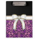 White Ribbon Bow with Purple Leopard Print Clipboard