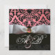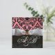WHITE RIBBON PINK BLACK DAMASK MONOGRAM INVITATION