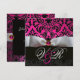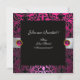WHITE RIBBON PINK FUCHSIA BLACK DAMASK MONOGRAM INVITATION