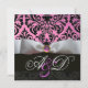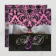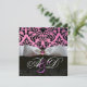 WHITE RIBBON PINK LILAC BLACK DAMASK MONOGRAM INVITATION