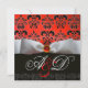 WHITE RIBBON RED BLACK DAMASK MONOGRAM Ruby Invitation