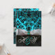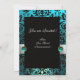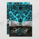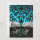 WHITE RIBBON TEAL AQUA BLUE BLACK DAMASK MONOGRAM INVITATION