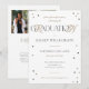 This graduation party invitation is perfect for a graduate graduating with an RN, nursing degree. The graduation invitation reads "Please join us for a party celebrating the gRaduatioN of ..." highlighting the RN in the word graduation with an elegant script font. The white background with gold and white polka dot accents creates a sophisticated and elegant tone for the celebration. The back of this graduation announcement has a spot for two photographs and a longer message along with a clever headline that reads "eaRNed it" emphasises the RN in the phrase, matching the text on the front of the announcement. The back is perfect for adding a message of gratitude or highlighting the graduate's accomplishments or future plans.