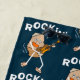 Rockin' in white text with a happy rock playing a guitar is a funny music design for musicians, students and teachers at birthdays and holidays.