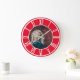 Clock design of the white Roman numeral on a clock face with a pattern for a round clock design. The red background can be changed to another color when you click Edit or Customize this further.