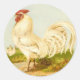 This set of stickers depicts a vintage illustration of a white rooster with a red comb. Two white hens are in the background.