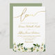 A modern combination of beautiful garden blooms and faux gold calligraphy. The lovely green and gold colours, text and other features of this wedding invitation template can be customised. You can edit the text for wording, font, size, and placement.