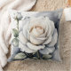 White Rose and rosebud, Silver Leaves Cushion