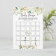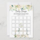 A unique white rose floral themed set of baby bingo cards tailored specifically to your future baby shower.